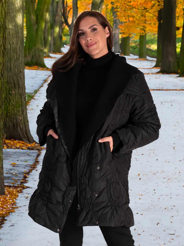 When searching out a few elements that exude splendor and warmth, this quilted coat with a knitted collar and cartwheel embroidery is a standout preference. Designed for every style and function, it gives: