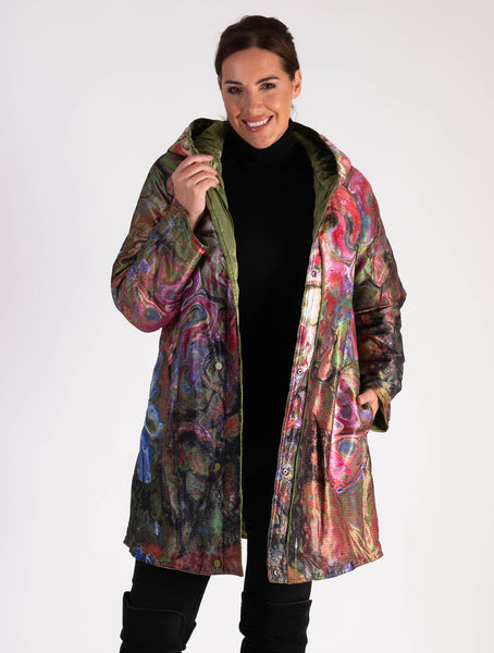 This reversible jacket is a first-rate preference for everyone looking to add vibrancy to their fabric cloth cabinet while participating in helpful consolation. This jacket sticks out for its fashionable and formidable aesthetic, featuring an adorable marbled print in a lush grass-inexperienced hue.