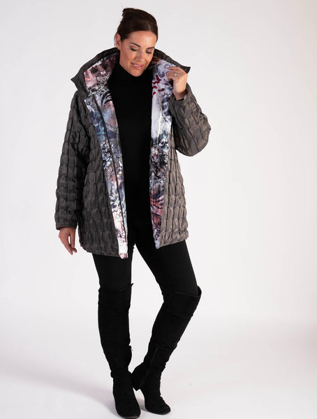 For those who understand understated sophistication, the dark grey quilted jacket with Japanese-inspired prints from Chesca Direct UK is a cloth material wardrobe. Combining cultural artistry with modern-day fashion, this jacket gives: